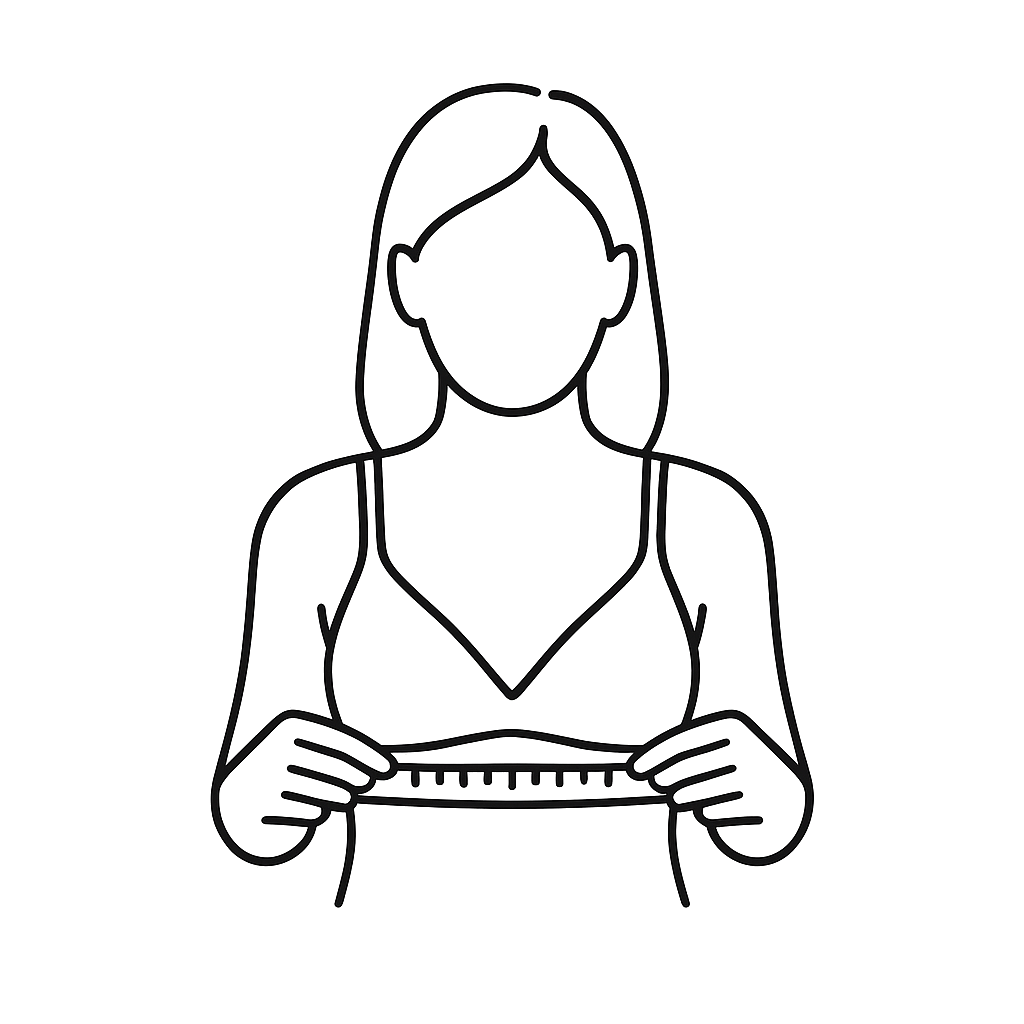 Measure directly under your bust where the band would sit. Keep the tape measure level and snug but not tight. This is your band size.